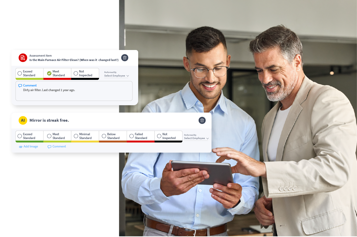 Quickly add details, images, comments, dictated notes, and corrective actions during inspections.